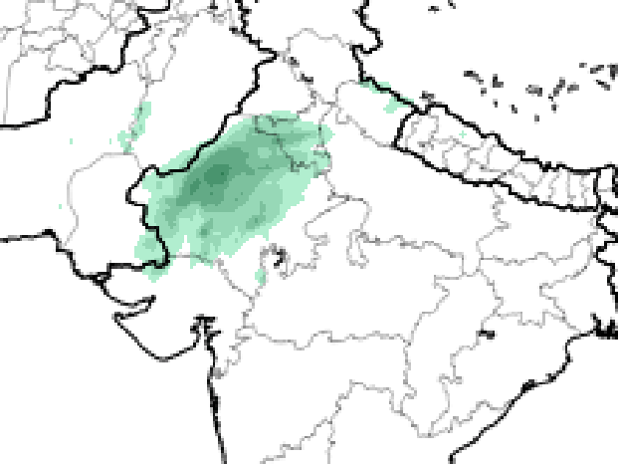 9:30pm,Cloudy with scattered rain over Rajasthan, into Haryana.